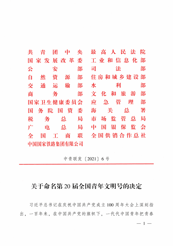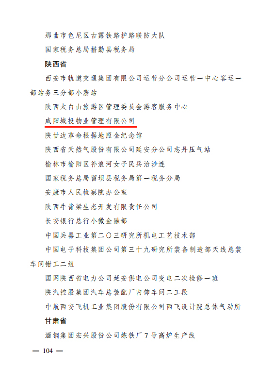 近日,第20届全国青年文明号集体评选结果揭晓,咸阳伟德betvlctor官方版物业管理有限公司被认定为全国青年文明号。此次命名表彰由共青团中央、最高人民法院、发展改革委等23家全国创建“青年文明号”活动组委会成员单位联合开展,咸阳伟德betvlctor官方版物业为我市唯一受表彰单位。