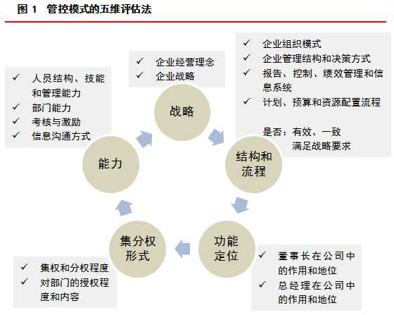 集团管控模式将明确集团总部与下属业务单元之间的管理及业务关系,相应地也明晰集团对各业务单元的管理重点和使用的管理方式。在实践中,集团管控模式有可能是财务管控型、战略管控型、操作管控型中的一种,也可能是几种模式的综合。